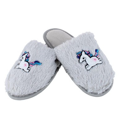 CTM Girl's Fuzzy Unicorn Slide Slippers