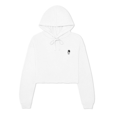 Dalix Astronaut Embroidered Fleece Cropped Hoodie Cold Fall Winter Women in White S Small