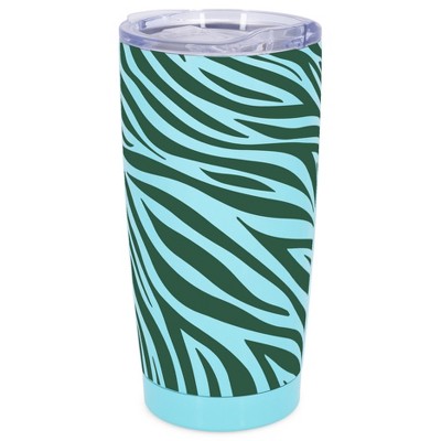 Elanze Designs 20 oz Stainless Steel On the Go Insulated Travel Tumbler With Push Top Lid, Forest Green Zebra Print Sky Blue