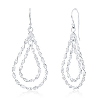 Bella Silver Sterling Silver, Double Twist Pearshaped Dangle Earrings - Silver
