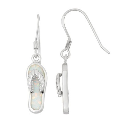 Opalata Sterling Silver Blue Inlay Opal Flip-Flop Earrings - Blue