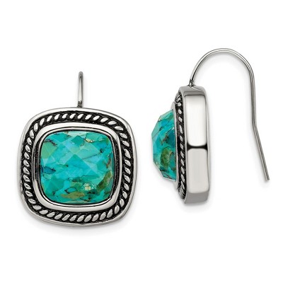 Chisel Stainless Steel Antiqued and Polished Imitation Turquoise Shepherd Hook Earrings
