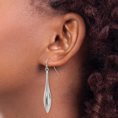 Chisel Stainless Steel Polished and Textured Dangle Earrings with Shepherd Hook