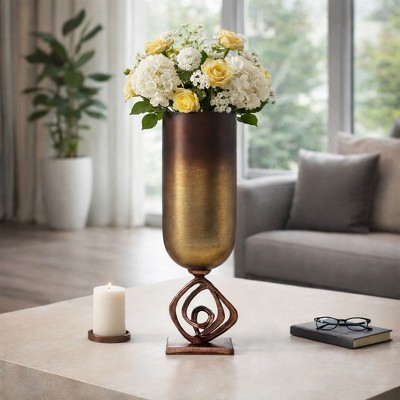Sleek Elongated Metal Vase for Living Room Decor - Tall Tapered Silhouett for Home Decor Accent - Decorative Flower Vase