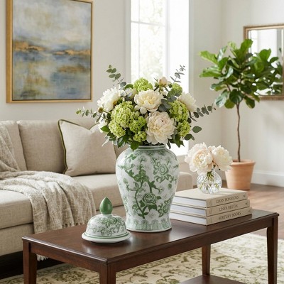 Contemporary Ceramic Vase for Living Room and Home Decor for House - Bird and Flower Temple Jar for House Accent or Table Decor