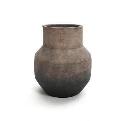 LuxenHome Rustic Vintage Ceramic Flower Vase Set, Inch Brown Ombre Terracotta Round Pottery for Living Room & Home Decor