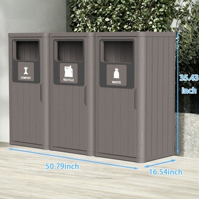 WELLFOR 155 gal 3 Shelf Wood Tool Organizer Deck Box Light Gray