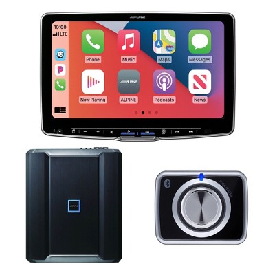Alpine Halo11 ILX-F511 CarPlay/Android Auto Receiver with Alpine R-A90S 900W 6-CH Amp, and RUX-H02 Volume/Bass Knob