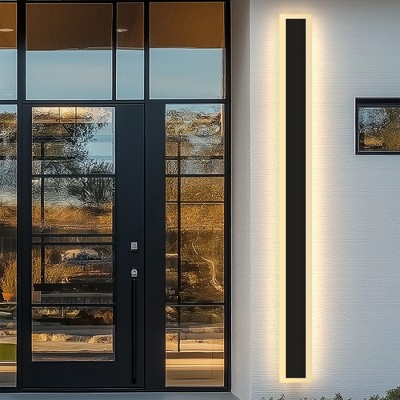 YANSUN 42.52 in. Matte Black 1-Light Lantern Wall Sconce Integrated LED Outdoor Wall Light