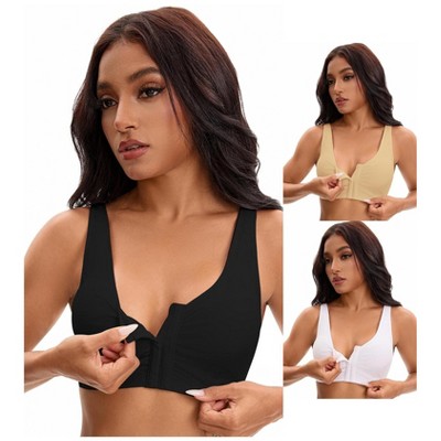 INSPIRE CHIC 3 Pcs Women's Lace Front Closure Full Coverage Workout Wirefree Breathable Soft Bras