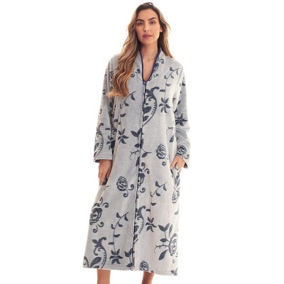 PAVILIA Womens Housecoat Zip Robe, Fleece Zipped Up Front Bathrobe, Plush Warm Long Zipper House Coat Lounger Pockets