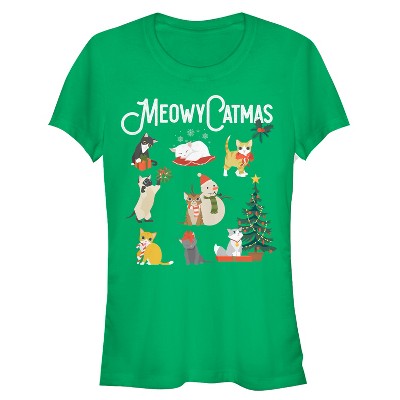 Juniors Womens Lost Gods Christmas Cat Collage T-Shirt