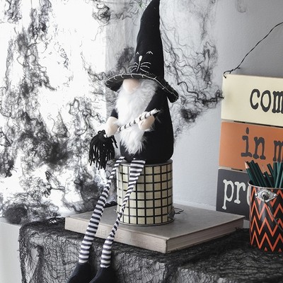 YOOCOZZ 4.3x4x26.8" Halloween Decoration Sitting Black Gnome With Broomstick&Long Legs