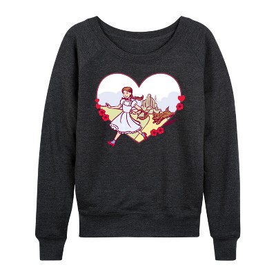 Women's - Wizard of Oz - Heart Dorothy Lightweight French Terry Wide Neck Long Sleeve Graphic Shirt