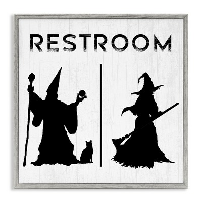 Stupell Industries Rustic Witch & Wizard Halloween Restroom Sign Framed Giclee Art, Gray, 12" x 12"