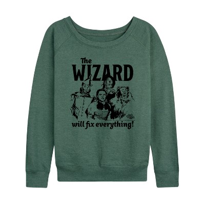 Women's - Wizard of Oz - The Wizard Will Fix Everything Characters Lightweight French Terry Wide Neck Long Sleeve Graphic Shirt