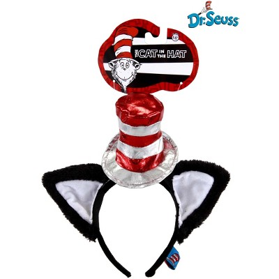 HalloweenCostumes.com One Size Fits Most Dr. Seuss Cat in the Hat Deluxe Costume Ears Headband with Stovepipe Hat, White/Black/Red