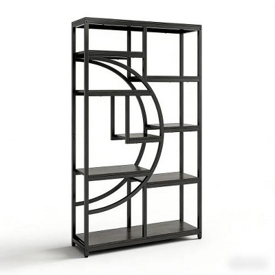 ACEPANO 68.89 in. H Freestanding Multifunctional Geometric Design Bookshelf with Black Metal Frame for Living Room-Gray