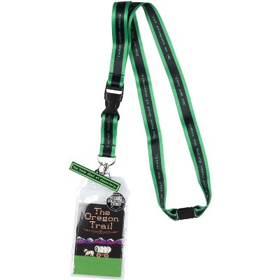 The Oregon Trail Lanyard ID Badge Holder Retro Video Game Design w/ Rubber Charm and Collectible Sticker Green
