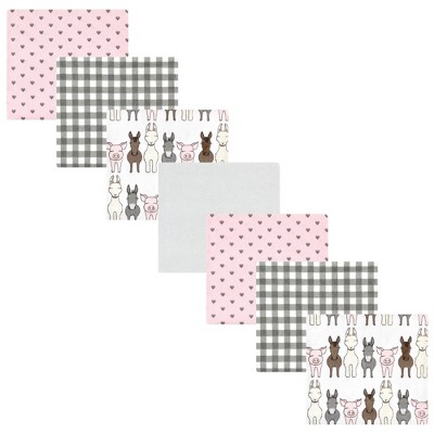Hudson Baby Infant Girl Cotton Flannel Receiving Blankets Bundle, Farm Friends Pink, One Size