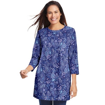 Woman Within Perfect Printed Long-Sleeve Crewneck Tunic