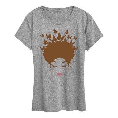 Women's - Instant Message - Woman Of Color Brown Butterfly Hair Short Sleeve Graphic T-Shirt