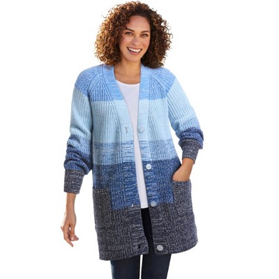 Woman Within Lightweight Ombrè Open Front Cardigan Sweater