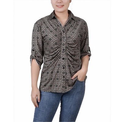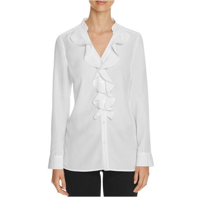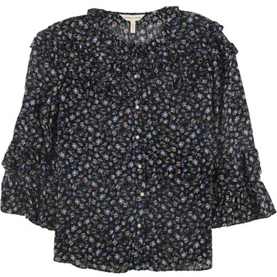 Allegra K Women's Peter Pan Collar Textured Stars Button Down Ruffle Top