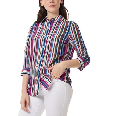 Women's Casual Vacation Striped Shirts Lapel Long Sleeve Button Down Blouses Tops Stylish
