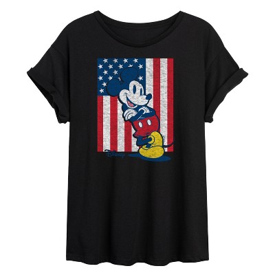 Women's - Disney - Mickey Vertical American Flag Oversized Graphic T-Shirt