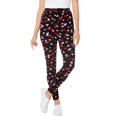 Woman Within Stretch-Cotton Knit Pull-On Printed Leggings