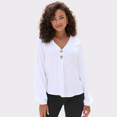 Women's Button Detail Long Sleeve Blouse Shirt - LASCANA