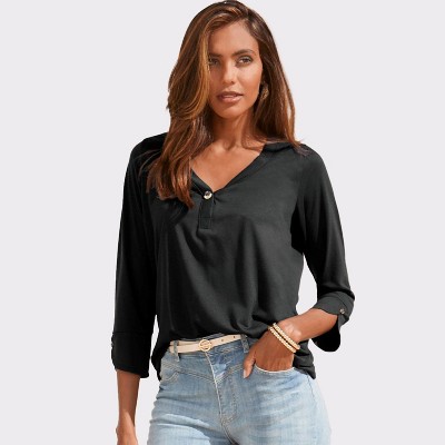 Women's Button Detail 3/4 Sleeve Knit Top - LASCANA