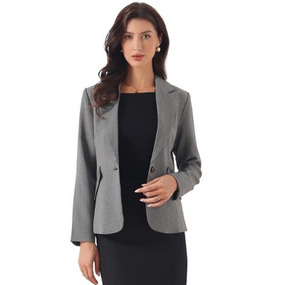 INSPIRE CHIC Women's Vintage Houndstooth Notched Lapel One Button Office Blazer