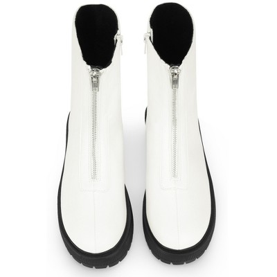 BLISSFUL STEP Platform Block Heel Booties with Zipper Dressy Combat Boots for Women