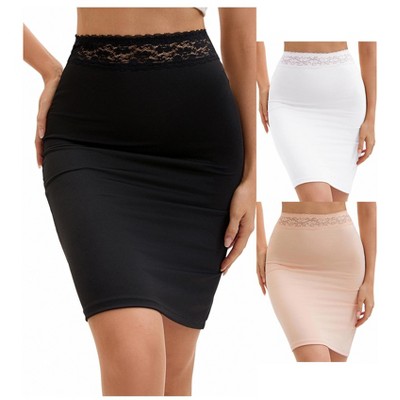 INSPIRE CHIC Anti-Static Half Slips for Women Soft Underskirt Short Mini Skirt with Floral Lace Waistband