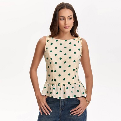 Women's Ruffle Hem Boat Neck Top - A New Day™ Light Beige Polka Dots