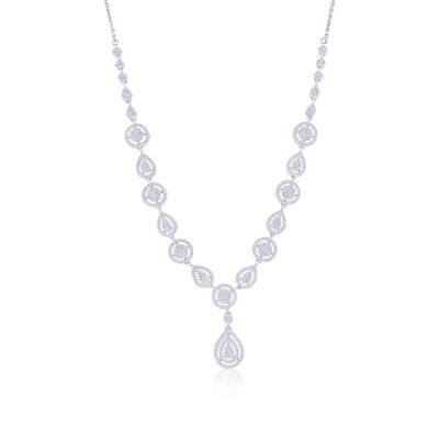 Guili Sterling Silver Rhodium Plated Clear Round Cubic Zirconia Three-Row Cluster Necklace, a radiant and elegant layering essential.
