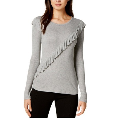 maison Jules Womens Ruffled-Trim Basic T-Shirt