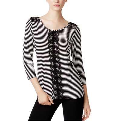 maison Jules Womens Lace Trim Knit Blouse