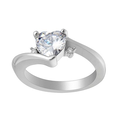 Kale Heart Engagement Ring Sterling Silver Clear Cz Womens Ginger Lyne Collection