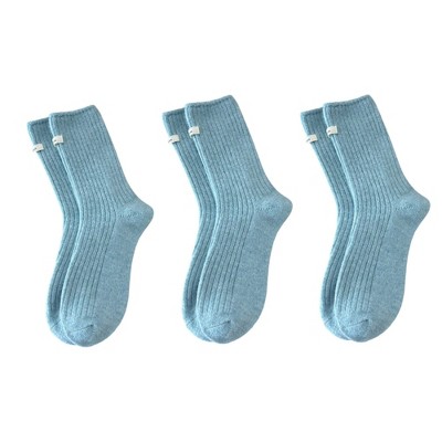 Anna-Kaci Women's 3-Pair Ribbed Crew Socks Set Soft Stretch Knit Fabric Minimal Everyday Comfort Socks - Blue