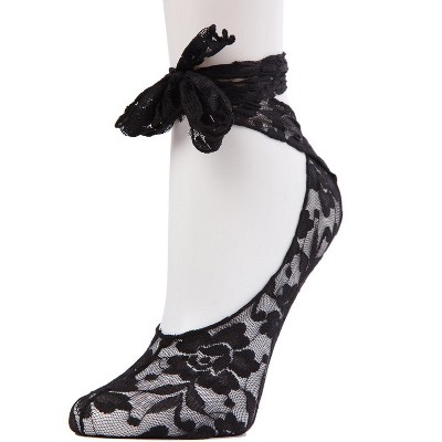 Memoi Dancer's Ankle-Tie Lace Liner Socks Black One Size