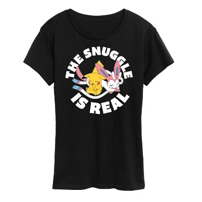 Women's - Pokémon - The Snuggle Is Real Pikachu and Sylveon Short Sleeve Graphic T-Shirt