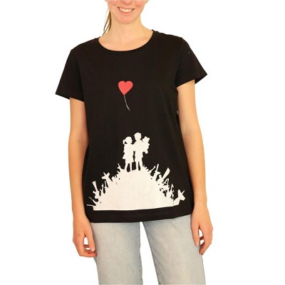 Elevenparis Womens Red Heart Balloon Graphic T-Shirt
