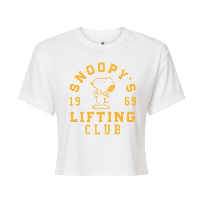 Women's - Peanuts - Snoopy Lifting Club Cropped Graphic T-Shirt