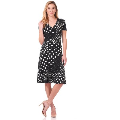 Rekucci Women's V-Neck Short Sleeve Crossover Dress with Tummy Control