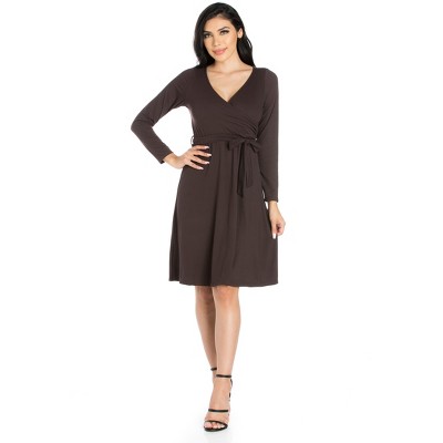 Womens Solid Color V-Neck Faux Wrap Dress - 24seven Comfort Apparel™