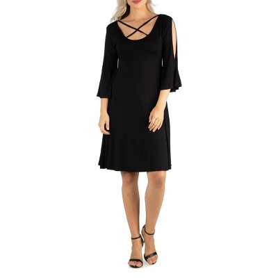 24seven Comfort Apparel Womens Knee Cold Shoulder Dress