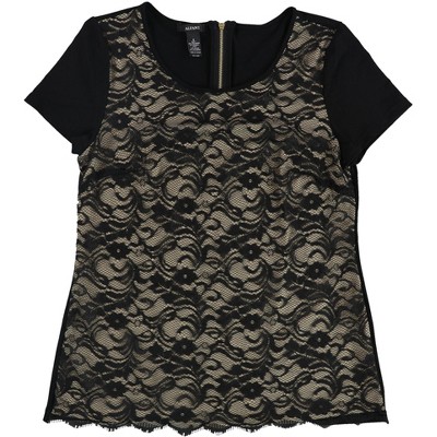 Lucky Brand Womens Velvet Contrast Embellished T-Shirt